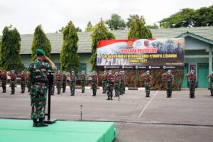 Sebanyak 179 prajurit TNI AD Personel Satgas Gelombang II Yonif 731/ Kabaresi Satgas Yonmek TNI Konga XXIII- P/ UNIFIL Lebanon TA 2022, di Lapangan Makodam XVI/ Pattimura, Sirimau, Ambon, Kamis (10/02/2022).