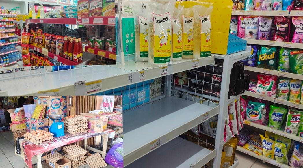 Serupa, di pasar-pasar ritel modern pun juga mengalami kelangkaan, bukan karena banyaknya pembeli, tapi karena tidak adanya pasokan dari gudang, kalaupun ada hanya sedikit.