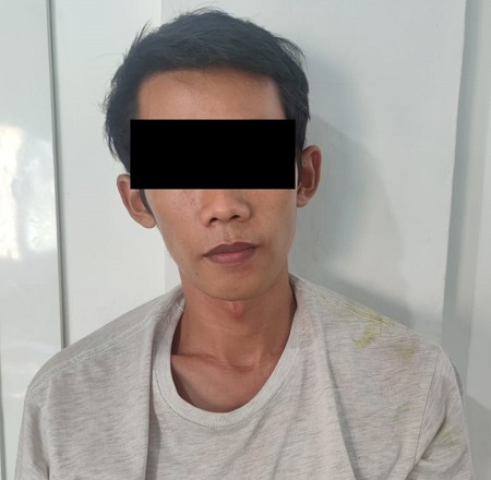 AR ( 25) warga Kampung Gunung Sari Kecamatan Rebang Tangkas Kabupaten Way Kanan pelaku tindak pidana pencurian dengan pemberatan (curat) di pemukiman, Kampung Purwa Negara Kecamatan Negara Batin Kabupaten Way Kanan. Sabtu (19/03/2022).l