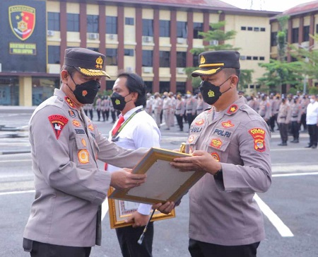 Kapolda Lampung, Irjen Pol Hendro Sugiatno memberikan secara langsung penghargaan bagi sebanyak 80 personelnya. Mereka diganjar penghargaan setelah sukses mengungkap kasus tindak pidana yang menonjol di Lampung.
