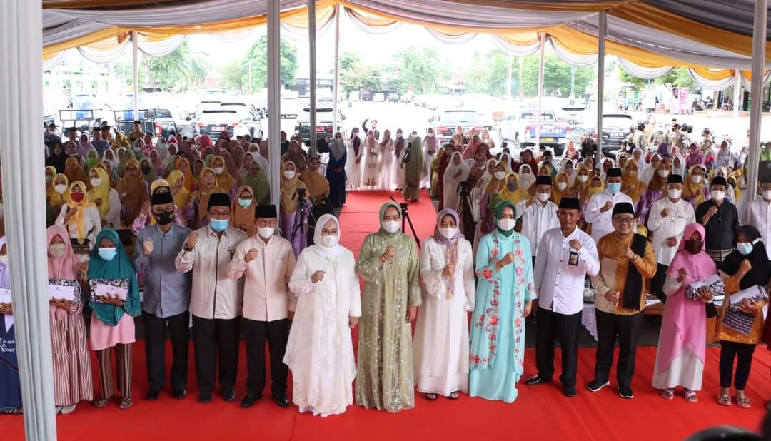 LAMPUNG UTARA – Pemerintah Provinsi (Pemprov) Lampung, menggelar Pengajian bersama Ketua TP-PKK Provinsi Lampung Riana Dari Arinal, di Lapangan GOR Sukung Kelapa Tujuh Kotabumi, Selasa (31/5/2022)