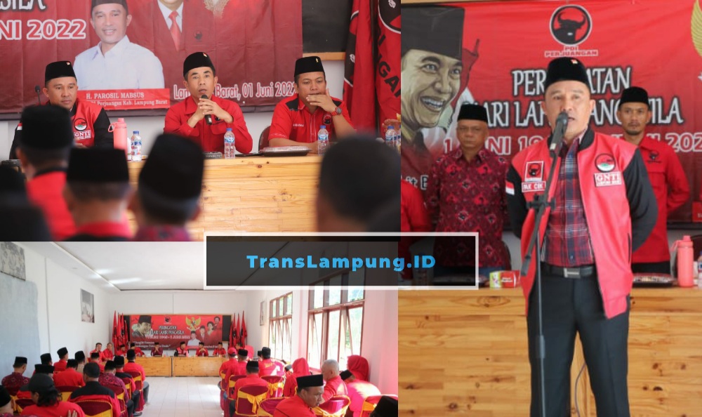 TransLampung.ID Lampung Barat – Dewan Pimpinan Cabang (DPC) Partai Demokrasi Indonesia (PDI) Perjuangan Kabupaten Lampung Barat menggelar upacara peringatan hari kelahiran Pancasila yang jatuh pada hari ini, Rabu (1/6/2022).