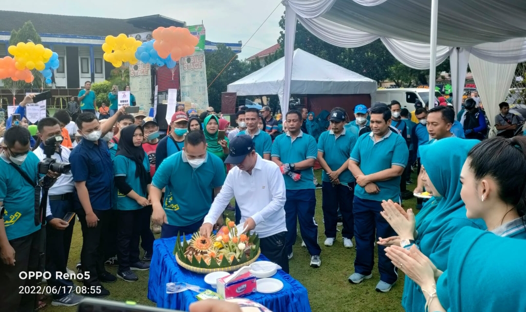 LAMPUNG UTARA – Puncak peringatan Hari Ulang Tahun Kabupaten Lampung Utara ke 76, diisi dengan kegiatan jalan sehat, sepeda santai dan senam massal, yang diikuti oleh seluruh ASN dan Masyarakat Lampung Utara. Jum.at (17/6/2022)