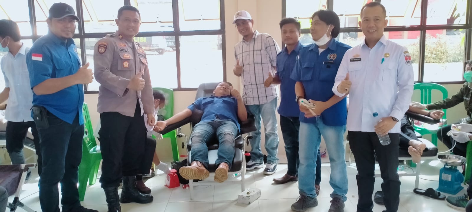 Dalam kegiatan bakti donor darah ini, di ikuti pendonor dari pihak Polres, TNI, Pol PP, Dishub dan PWI.(Nara)
