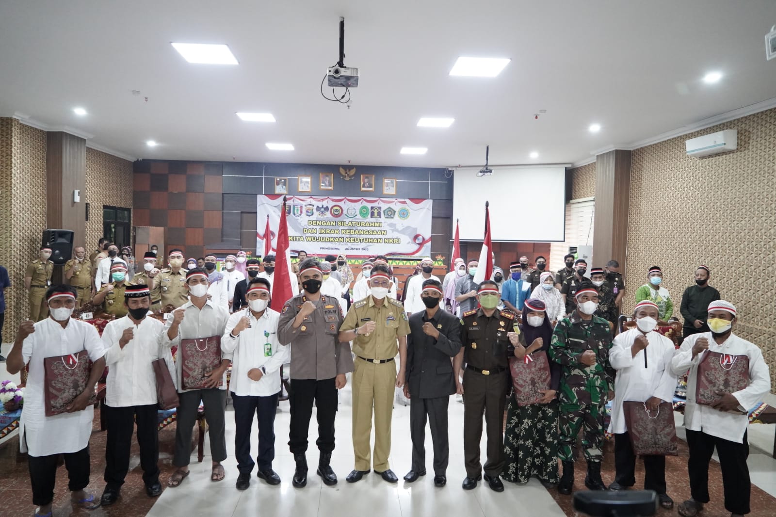 Penjabat Bupati Pringsewu Adi Erlansyah yang juga hadir bersama Ketua DPRD Pringsewu Suherman, Kajari Pringsewu Ade Indrawan, Kapolres Pringsewu AKBP Rio Cahyowidi serta Dandim 0424 pada kesempatan tersebut memberikan tali asih kepada eks anggota Khilafatul Muslimin yang telah berikrar dan sumpah setia kepada NKRI, dimana bupati dan jajaran forkopimda beserta seluruh eks anggota Khilafatul Muslimin yang hadir semuanya mengenakan pita merah putih sebagai pengikat kepala.