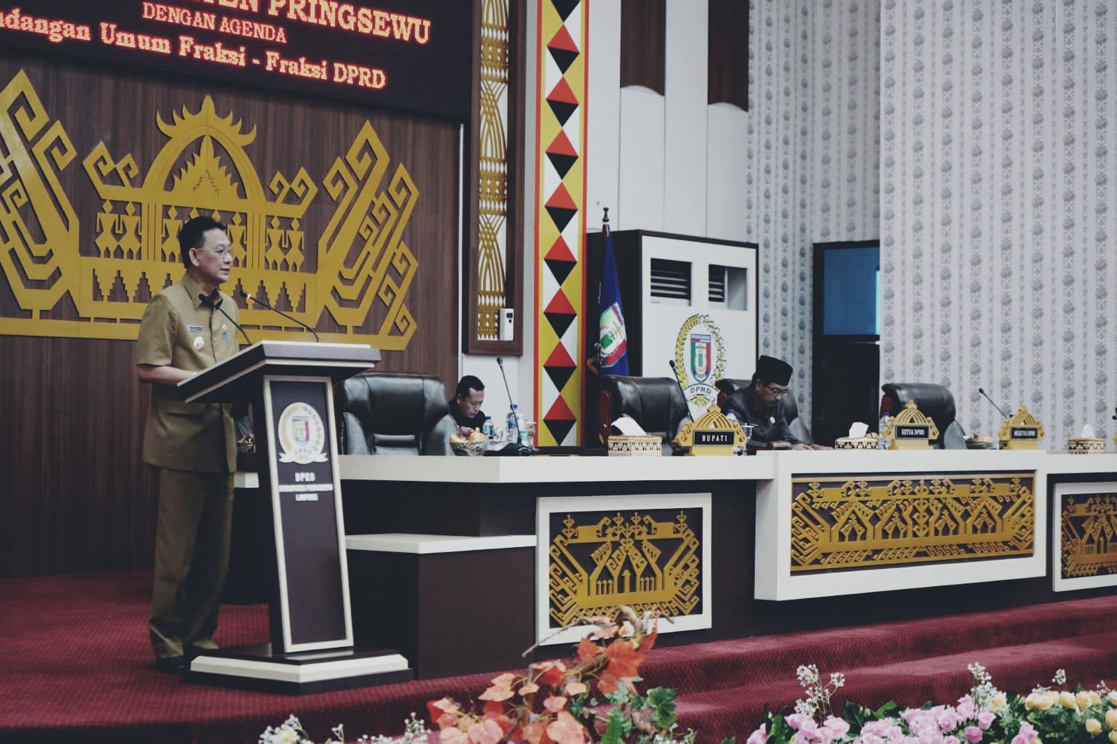 PRINGSEWU – Penjabat Bupati Pringsewu menjawab pemandangan umum fraksi-fraksi DPRD Pringsewu terkait Ranperda Perubahan APBD Pringsewu 2022. Jawaban tersebut disampaikannya melalui rapat paripurna DPRD Pringsewu yang dipimpin Ketua DPRD Suherman, serta dihadiri jajaran pemerintah daerah dan forkopimda di gedung DPRD setempat, Senin (05/09/22).