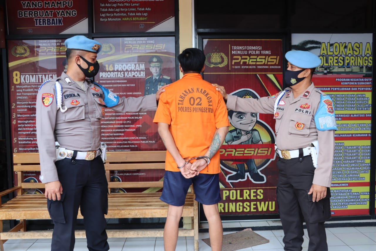 Pringsewu, Seorang pemuda asal kecamatan Sukoharjo Kabupaten Pringsewu, Lampung, di amankan polisi lantaran menjadi kurir narkotika jenis sabu.