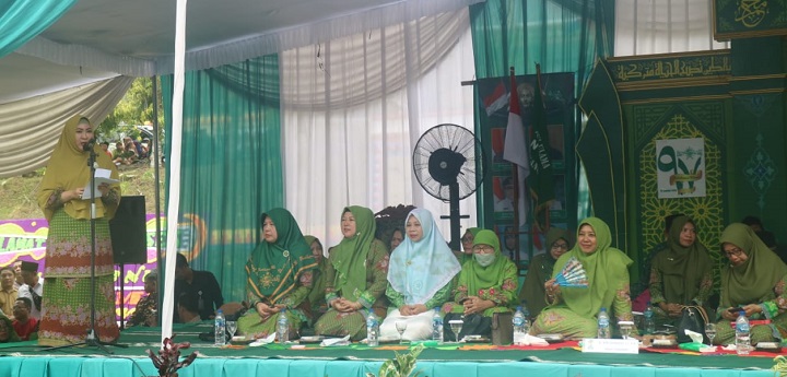 BERI APRESIASI DAN UCAPAN SELAMAT: Bupati Tanggamus Dewi Handajani dan Wabup AM. Syafi’i memberikan apresiasi yang mendalam dan ucapan selamat hari jadi satu abad (100 tahun) NU di Kabupaten Tanggamus. (Foto-foto: DISKOMINFOSANDI TANGGAMUS)