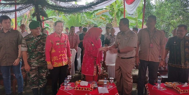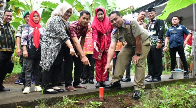 SUKSESKAN GEMAPATAS: Bupati Tanggamus Dewi Handajani, Kepala ATR/BPN Tanggamus Deden Permana, bersama leading sector terkait dan masyarakat, turut menyukseskan Program GEMAPATAS Kementerian ATR/BPN RI seluruh Indonesia yang masuk dalam Rekor MURI, di Pekon Tanjungjati. (Foto-foto: DISKOMINFOSANDI KABUPATEN TANGGAMUS)