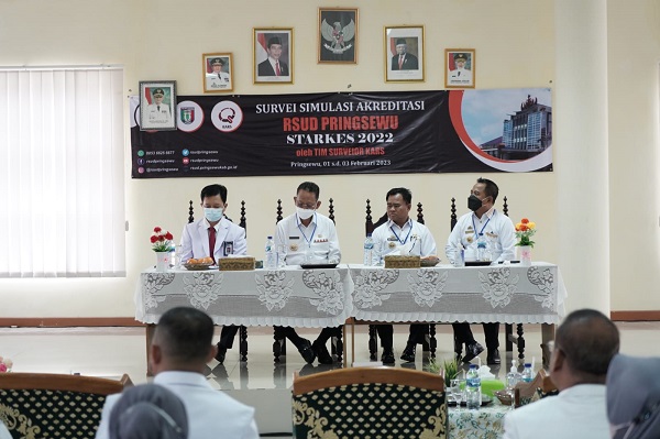 Menurut Pj.Bupati Pringsewu, tujuan Survei Simulasi Akreditasi adalah untuk mendorong semua komponen yang ada, terutama di RSUD Pringsewu untuk menyukseskan dan mendukung kegiatan akreditasi dalam rangka meningkatkan budaya keselamatan dan mutu sebuah rumah sakit.