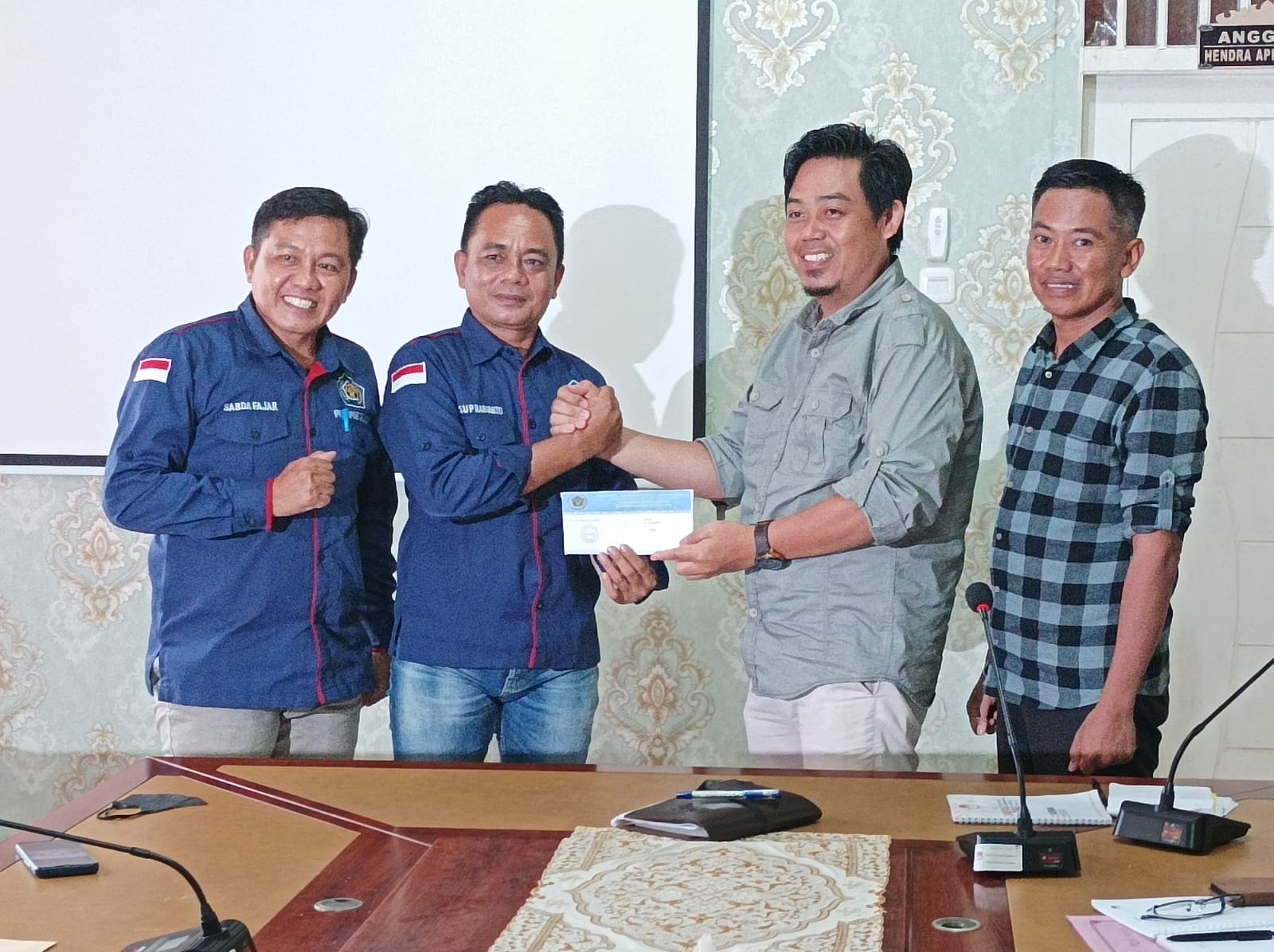 Rombongan PWI mulai dari Ketua PWI Supradianto, Sekretaris Sabda Fajar, beserta anggota diterima langsung ketua KPU Kabupaten Lampung Selatan (Lamsel) Ansurasta Razak dan Ketua divisi media sosial Irsan Didi beserta Sekretaris KPU Bejo Purnomo.