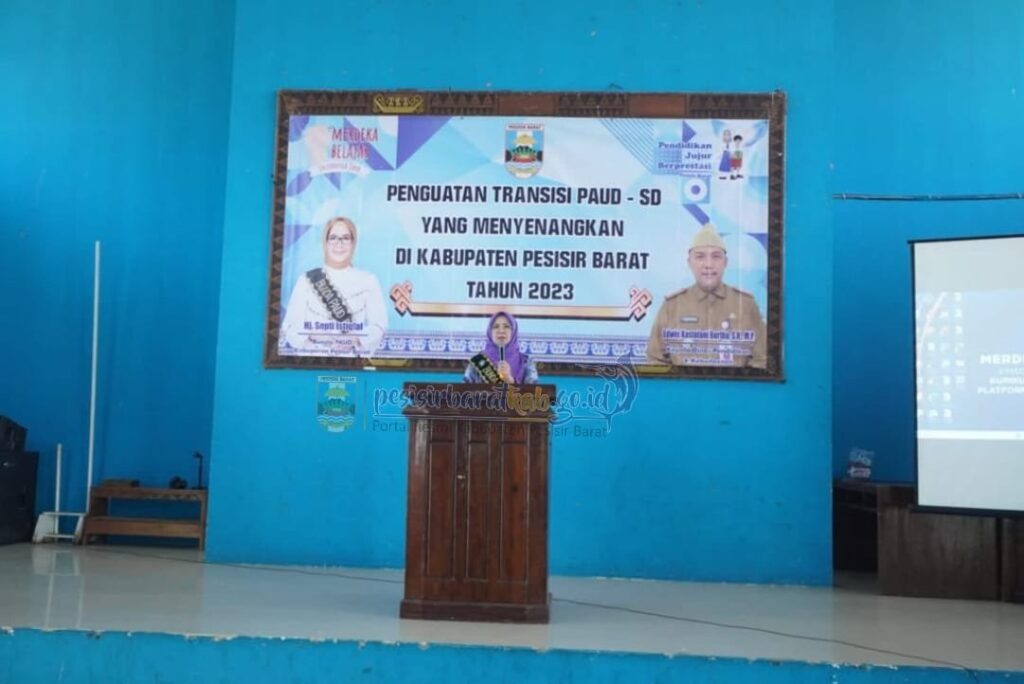 TRANSLAMPUNG.ID -Bunda PAUD Kabupaten Pesisir Barat (Pesibar), Septi Istiqlal, membuka secara resmi Sosialisasi Transisi PAUD-SD Tahun 2023, di GSG (Gedung Serbaguna) Selalaw Labuhanjukung, Kecamatan Pesisir Tengah, Jumat (9/6/2023).