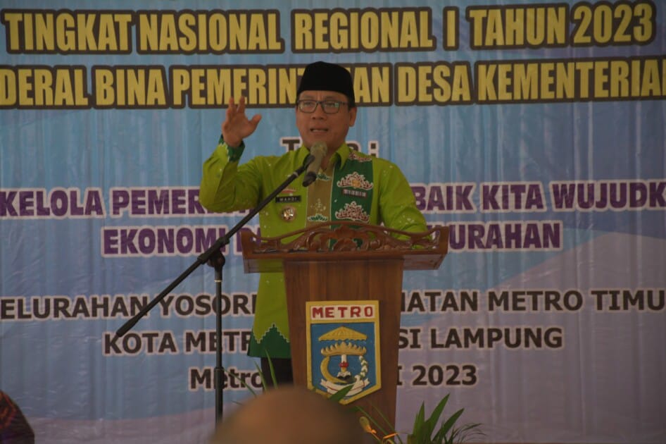 Wali Kota Metro Wahdi dalam sambutannya, mengatakan lomba kelurahan tingkat Nasional tahun 2023 ini adalah amanah lebih dari Permendagri Nomor 81 tahun 2015, tentang lomba kelurahan sebagai evaluasi dan penilaian perkembangan penyelenggaraan pemerintahan, kewilayahan, ke masyarakat yang diselenggarakan secara berjenjang, mulai dari tingkat kecamatan, tingkat kota, tingkat provinsi sampai dengan tingkat nasional.