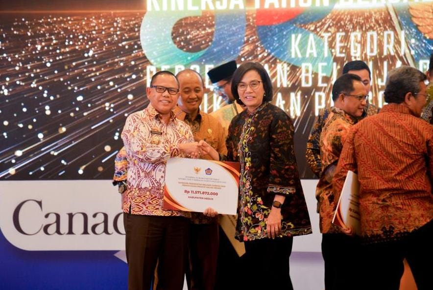 JAKARTA – Pemerintah Kabupaten Mesuji menerima penghargaan atas kinerja fiskal daerah bersama 30 daerah lain se- Indonesia diserahkan langsung oleh Menteri Keuangan Sri Mulyani dan Menteri Dalam Negeri (Mendagri) Tito Karnavian di Aula Mezanine, Gedung Djuanda I, Kementerian Keuangan JI. Dr. Wahidin Raya No. 1, Jakarta Pusat, DKI Jakarta, Selasa (03/10/2023).