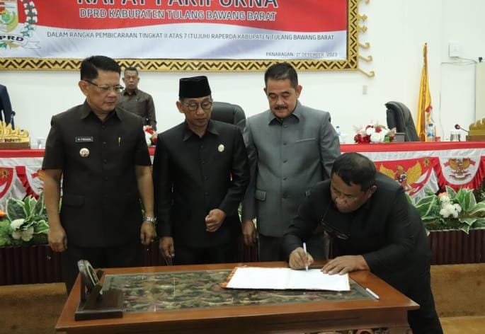 PANARAGAN (translampung.id)– Dewan Perwakilan Rakyat Daerah (DPRD) Kabupaten Tulangbawang Barat (Tubaba) Lampung, menggelar rapat paripurna dalam rangka pembahasan tingkat ll atas 7 Rancangan Peraturan Daerah (Raperda) setempat.