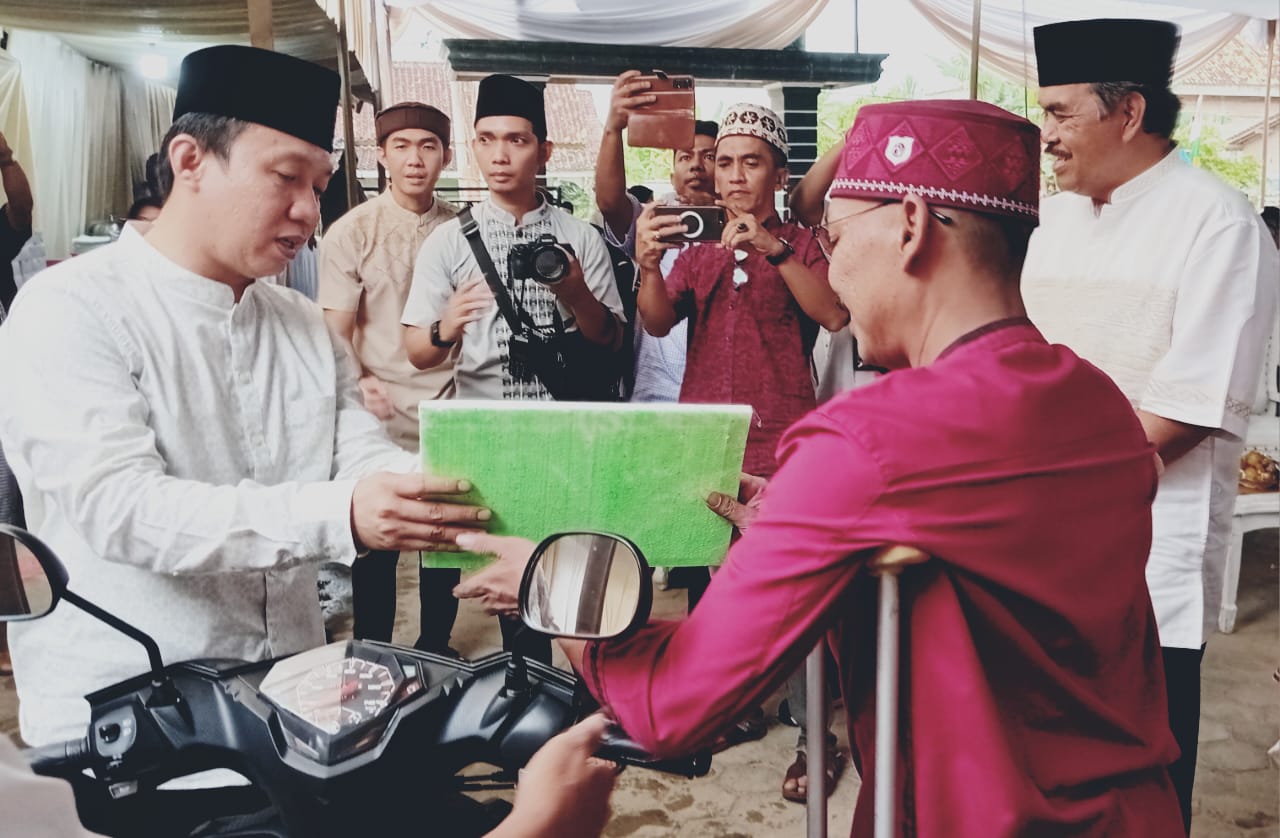 PRINGSEWU – Safari Ramadan 1445 H Pemerintah Kabupaten Pringsewu di Kecamatan Ambarawa dilaksanakan di Masjid Nurul Huda, Pekon Persiapan Kresnomulyo Barat, Minggu (25/3). Pada kesempatan tersebut, Pj.Bupati Pringsewu DR.Marindo Kurniawan, ST, MM didampingi Sekretaris Daerah Drs.Heri Iswahyudi, M.Ag. menyerahkan sejumlah bantuan.