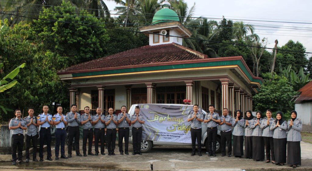 MASIH di awal lembaran April, Senin (1/4/2024), Lapas Kelas IIB Kotaagung menggelar kegiatan sosial berbagi takjil kepada masyarakat. Kegiatan itu dalam rangka mengisi peringatan Hari Bakti Pemasyarakatan (HBP) ke-60 tahun 2024 yang bertepatan dengan bulan suci Ramadan 1445 Hijriah.