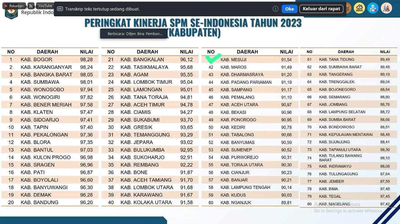 Tidak hanya itu, yang lebih membanggakan lagi, dari total 416 Kabupaten, se-Indonesia, Kabupaten Mesuji menempati urutan ke 41 Peringkat Kinerja SPM, Kabupaten se-Indonesia untuk tahun 2023.