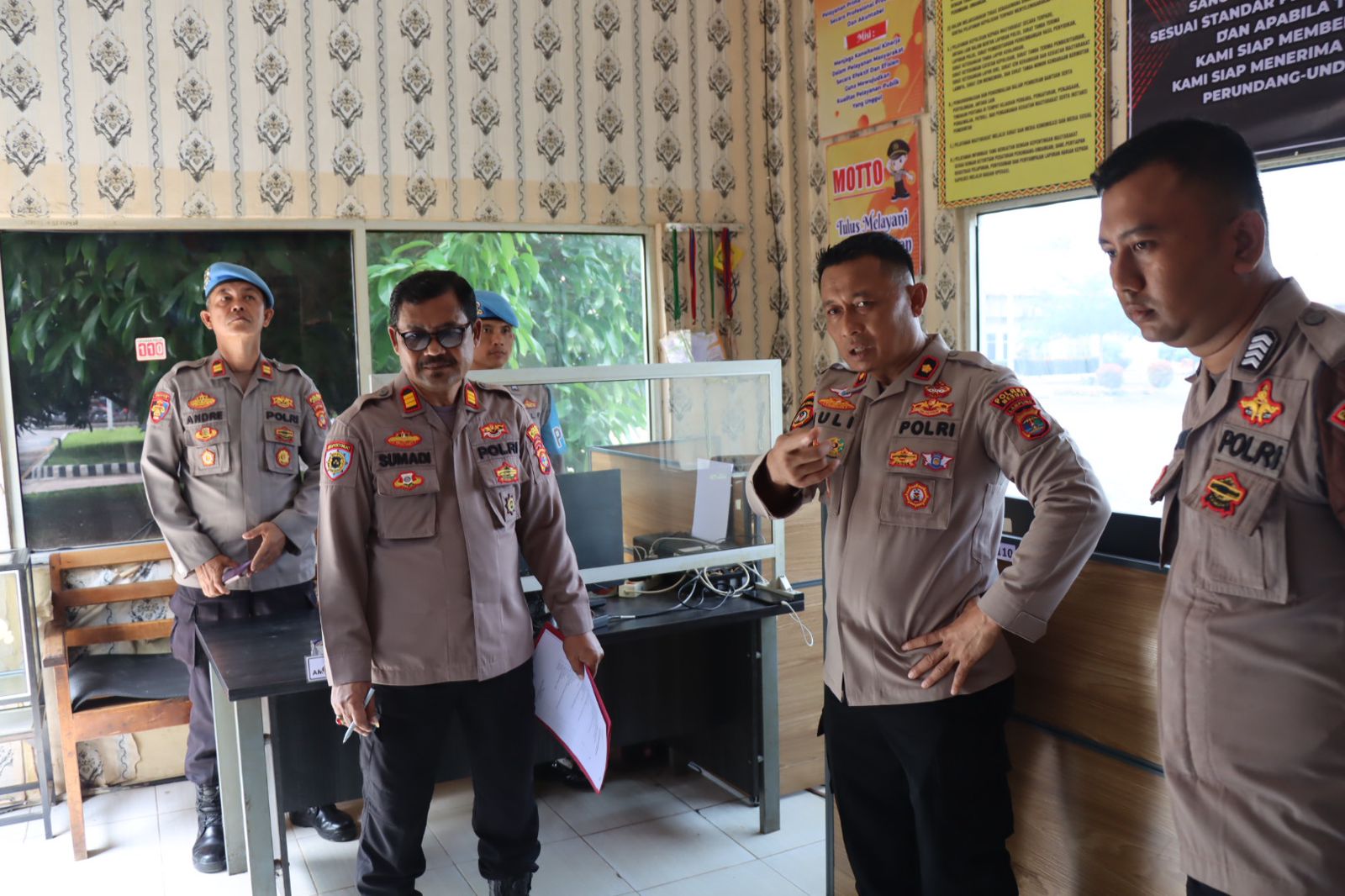 MESUJI – Waka Polres Mesuji Kompol Juli Sundara S.Pd., di dampingi Kasi Was, AKP Sumadi dan Kasi Propam IPTU Andre Rizal S.H., melakukan inspeksi mendadak (sidak) di ruang pelayanan publik yang ada di Mapolres setempat, Rabu (22/05).