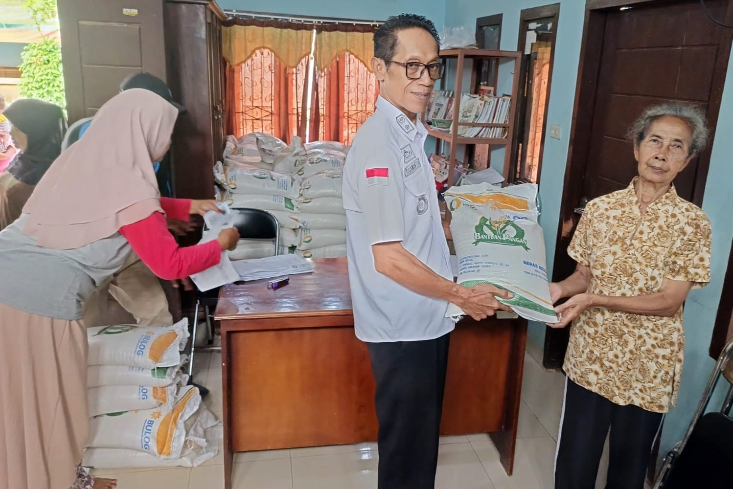 Kantor Pekon Ganjaran menjadi pusat distribusi bantuan beras, sebuah upaya yang terkoordinasi dengan baik oleh pihak pekon, melibatkan petugas administrasi dan relawan dari masyarakat setempat.