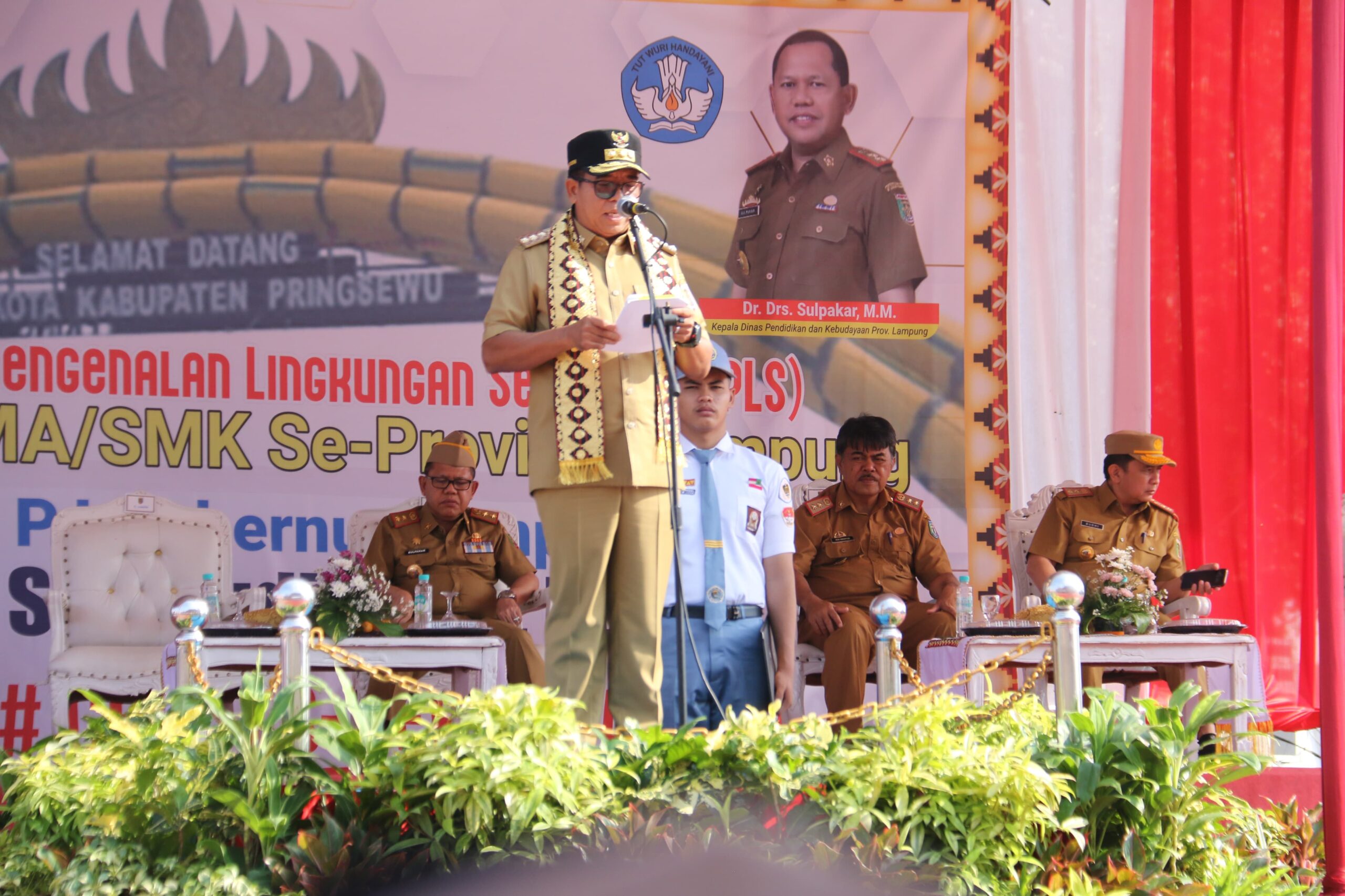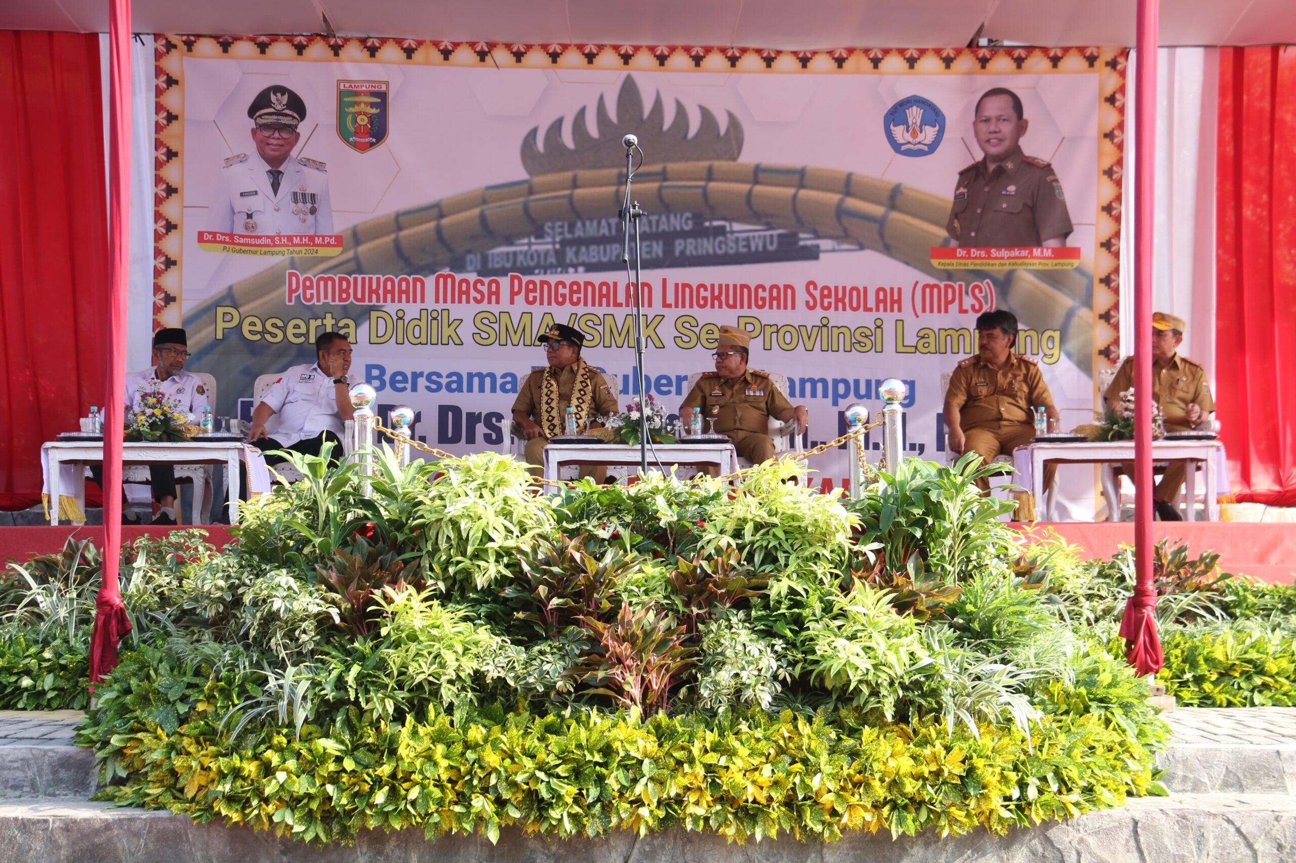PRINGSEWU – Pj Gubernur Lampung Samsudin dalam kunjungannya membukaan Masa Pengenalan Lingkungan Sekolah (MPLS) tingkat SMA dan SMK se-Provinsi Lampung. Acara yang berlangsung di Komplek Menara Pandang Bendungan Way Sekampung, Pagelaran, Pringsewu pada Senin (15/7).