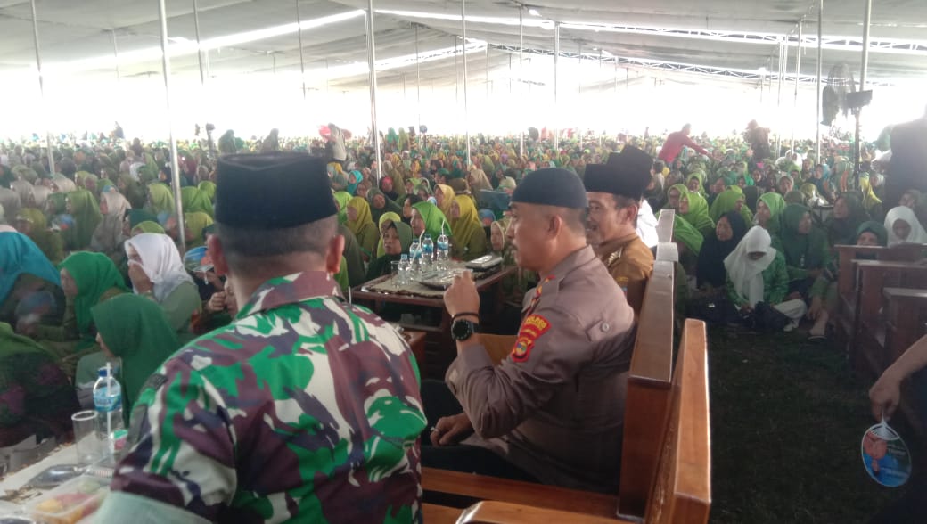 PRINGSEWU – Ribuan warga dari berbagai daerah memadati lapangan Pekon Bulurejo, Gadingrejo, Pringsewu, untuk menghadiri acara pengajian dalam rangka peringatan Hari Lahir (HARLAH) ke-78 Muslimat NU pada Selasa (2/7/2024). Acara yang dimulai sejak pukul 08.00 Wib ini mendapatkan pengamanan ketat dari aparat keamanan setempat.