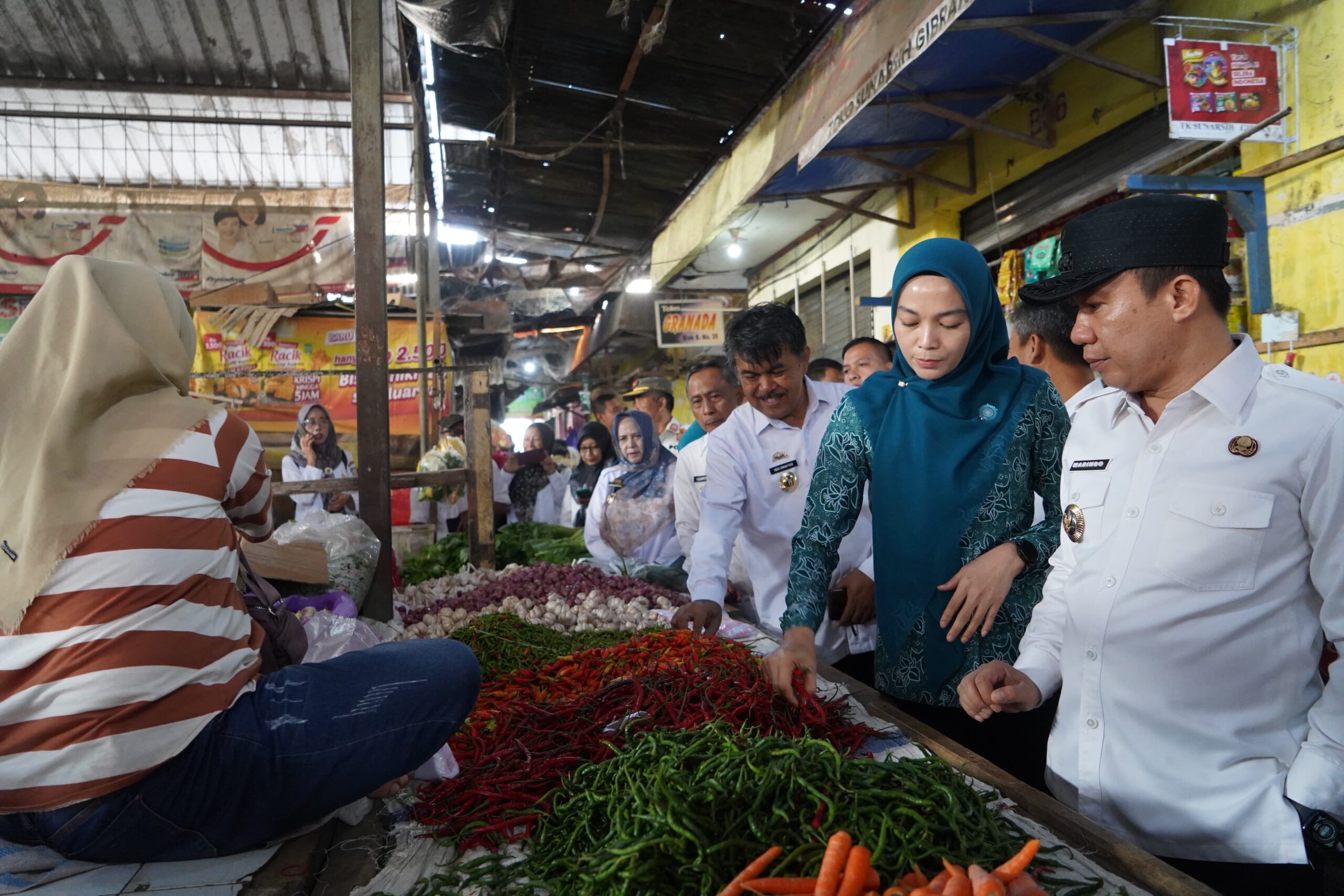 Pj.Bupati Pringsewu bersama Pj.Ketua TP-PKK Kabupaten Pringsewu Agnesia Marindo pada kesempatan tersebut berkeliling ke dalam pasar dan berdialog dengan para pedagang. Bahkan, berbelanja sejumlah kebutuhan pokok hingga sayuran dan buah-buahan.