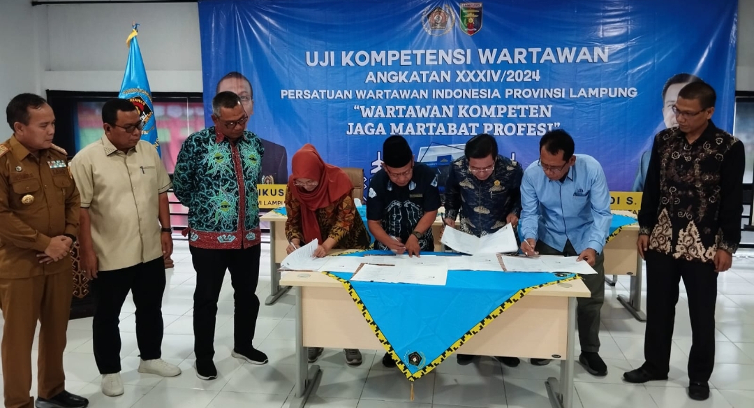 Lampung, Translampung.Id – Persatuan Wartawan Indonesia (PWI) Lampung menandatangani nota kesepahaman (MoU) dengan empat universitas untuk pemberian beasiswa kepada wartawan, di Balai Wartawan Sofian Akhmad, Senin pagi, 5 Agustus 2024.