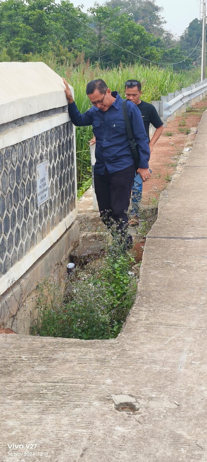 Hal tersebut disampaikan Ketua Komisi III DPRD Tubaba Edi Anwar, saat meninjau langsung lokasi sisi jembatan Way Tekuk yang amblas, penghubung antara Tiyuh (Desa) Panaragan, Bandar Dewa, dan menggala Mas, Kecamatan Tulangbawang Tengah, Tubaba, Sabtu (16/11/2024) sekitar pukul 14.18.Wib.