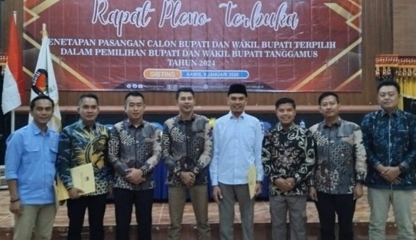 Penetapan Bupati dan Wakil bupati Tanggamus terpilih itu berdasarkan hasil Rapat Pleno Terbuka yang digelar Komisi Pemilihan Umum (KPU) Tanggamus di Aula Serumpun Padi, Pekon Kutadalom, Kecamatan Gisting, pada Kamis (9/1/2025).