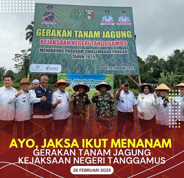 translampung.id, TANGGAMUS – Pemerintah Kabupaten bersama Kejaksaan Negeri Tanggamus kompak mendukung program swasembada pangan yang digaungkan Pemerintah Pusat, dengan melakukan aksi gerakan tanam jagung di Pekon Gisting Bawah, Kecamatan Gisting, pada Rabu (26/2/2025).