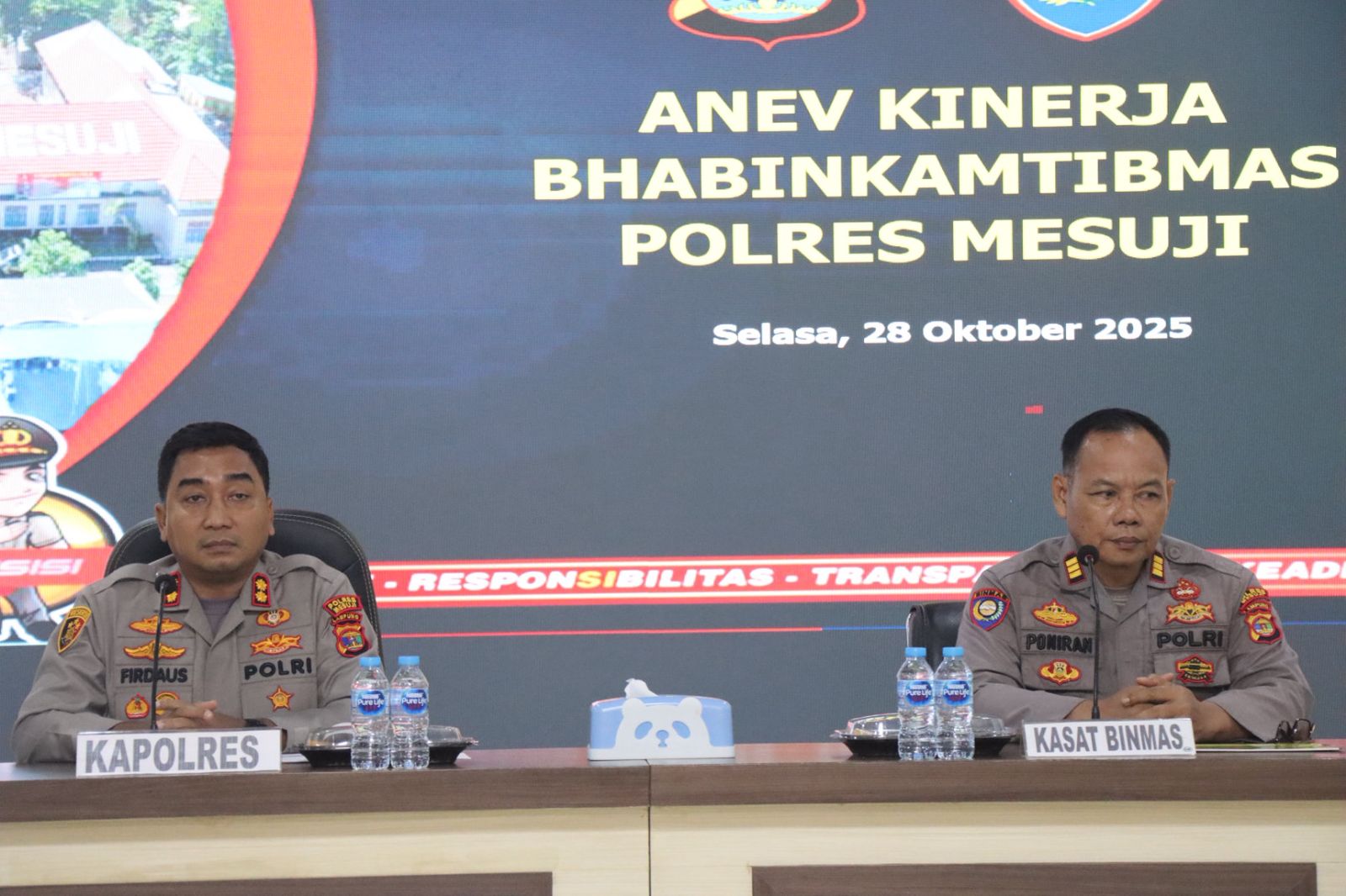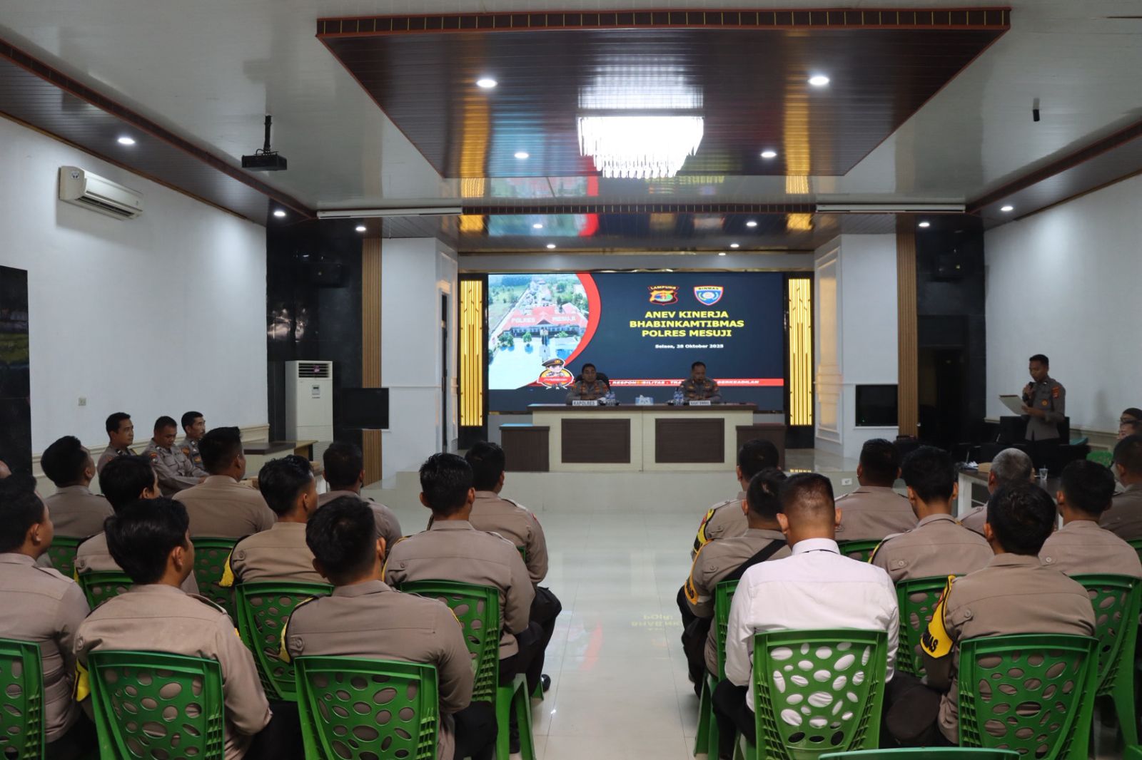 MESUJI – Polres Mesuji menggelar kegiatan Analisa dan Evaluasi (Anev) kinerja Bhabinkamtibmas jajaran Polres Mesuji. Kegiatan ini dilaksanakan di Aula Tri Brata Endra Dharma Laksana dan dipimpin langsung oleh Kapolres Mesuji AKBP Dr. Muhammad Firdaus S.Ik, M.H. Selasa (28/10/2025).