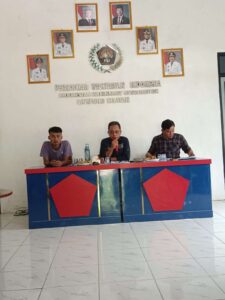 Ketua PWI Lampung Selatan, Supradianto didampingi Sekretaris Sabda Fajar dan Bendahara Idho Mai Saputra, menggelar rapat pembentukan panitia Konkerkab, di Kantor PWI setempat, Sabtu (6/12/2025).