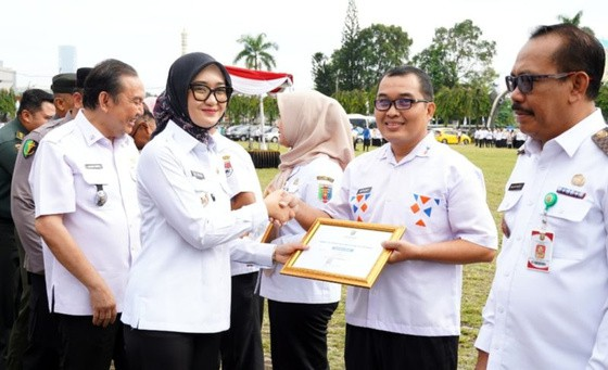 Translampung.id – Wakil Gubernur Lampung, Jihan Nurlela menjadi pembina upacara pada Hari Kesehatan Nasional (HKN) ke-61 Tahun 2025, di Lapangan Korpri, Rabu (12/11/2025).