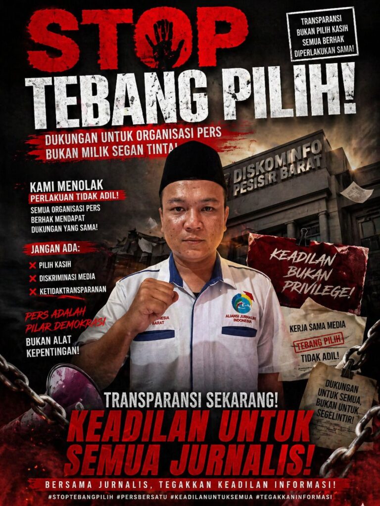 “Kami melihat masih adanya praktek pengkotak-kotakan alias tebang pilih organisasi media disini (Pesisir Barat-red) bahkan berlangsung terang-terangan. Beberapa organisasi media masih tetap menjadi primadona, sementara beberapa lainnya hanya gigit jari saja,” kata, Rido Haryanto, Sekretaris Aliansi Jurnalistik Online (AJO) Indonesia, Kamis (30/4/2026).