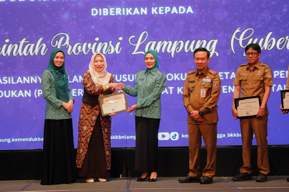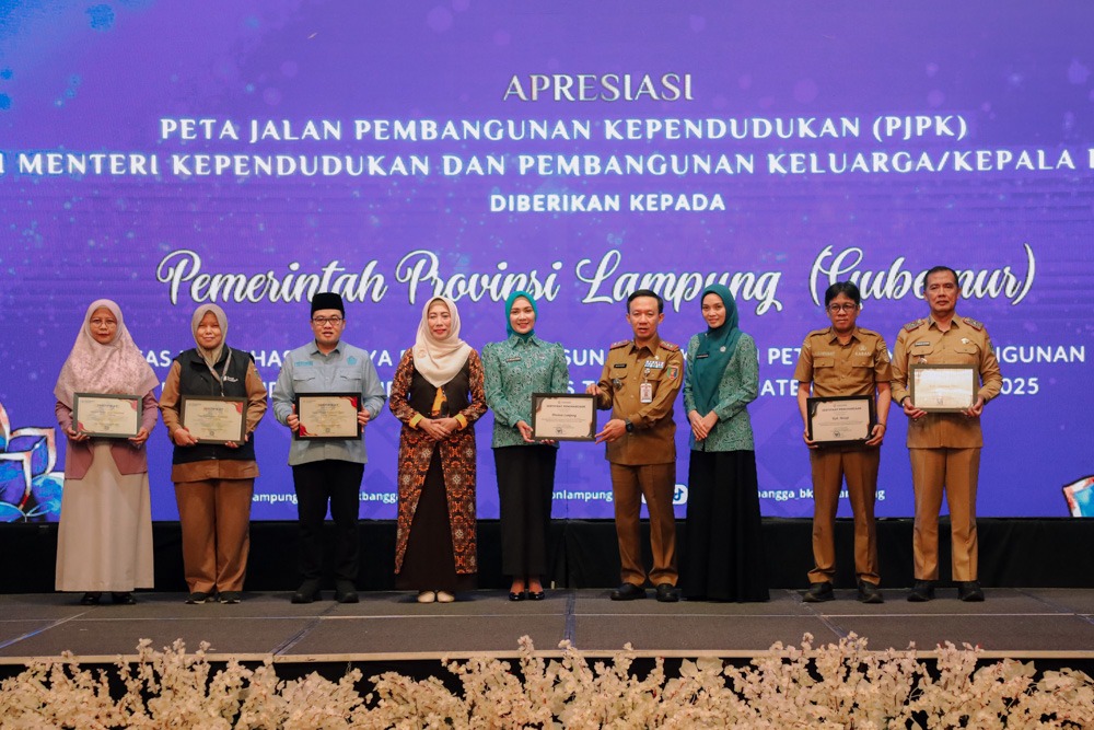 BANDARLAMPUNG – Pemerintah Provinsi Lampung menerima Apresiasi Peta Jalan Pembangunan Kependudukan (PJPK) dari Menteri Kependudukan dan Pembangunan Keluarga/Kepala BKKBN atas keberhasilan menyusun dokumen Peta Jalan Pembangunan Kependudukan (PJPIK) berkualitas tahun 2025.